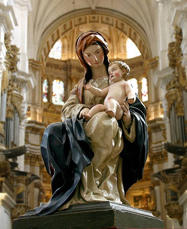 La Virgen del Patrocinio (también conocida con las advocaciones de Virgen de Belén y Virgen del Rosario) fue esculpida por Alonso Cano para sustituir a la Inmaculada ubicada en la urna que coronaba el extraordinario facistol que había construido para el coro catedralicio en 1652, la cual gustó tanto al cabildo que fue trasladada a la sacristía. La Virgen del Patrocinio ocupó la urna del facistol hasta el siglo XIX, actualmente se encuentra en el museo de la catedral.