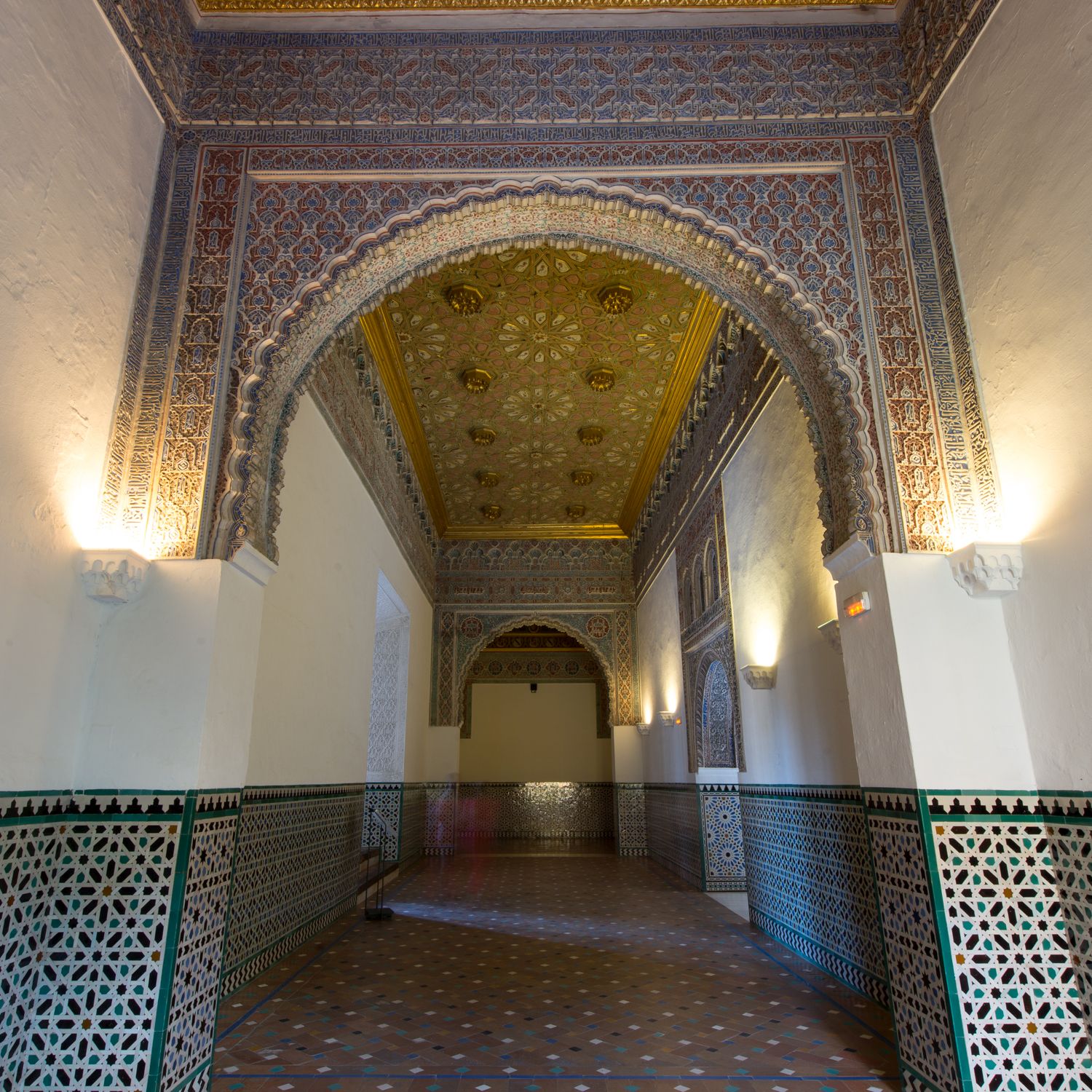 “Sirviendo de pasadizo desde el alcázar un palenque alto cubierto de ricas alfombras y defendió por el sol de espesos toldos”.