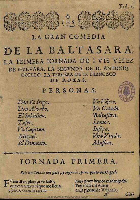 - La Baltasara de Rojas Zorrilla, Antonio Coello y Luis Vélez de Guevara.