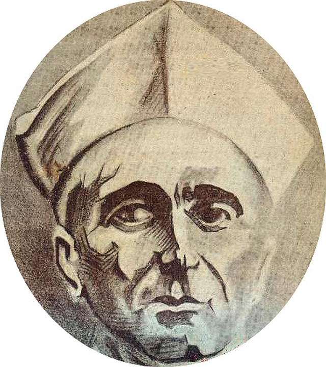 Al no disponer de una imagen de época del compositor, hemos elegido una de las idealizaciones del siglo XX: el dibujo firmado por Tonio para una edición musical realizada en Vitoria en 1948.
